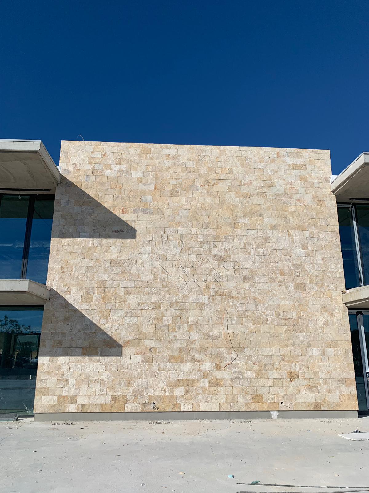 Płytki cięte z wapienia bałkańskiego do stosowania na elewacjach. Z powodzeniem mogą być również wykorzystywane na ścieżki dla pieszych, opaska basenów oraz w inne średnio obciążone miejsca ruchu pieszego. Grubość kamienia to ok 2-3cm, długości od 10 do 45cm, natomiast wysokości wahają się w przedziale 3-30cm. Można wybrać jedną wysokość płytek lub ich mieszankę.